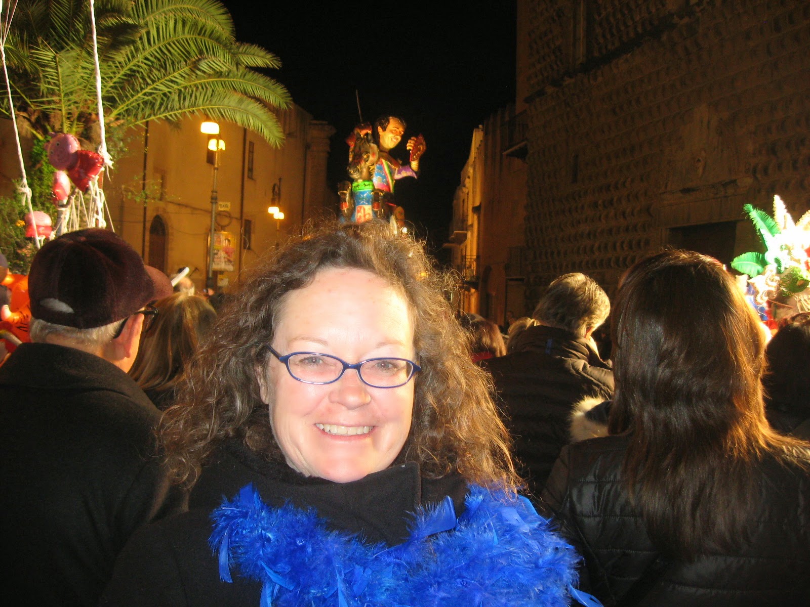 A float makes its way past the ancient Steripinto Palace on the final night of Carnevale di Sciacca 2014